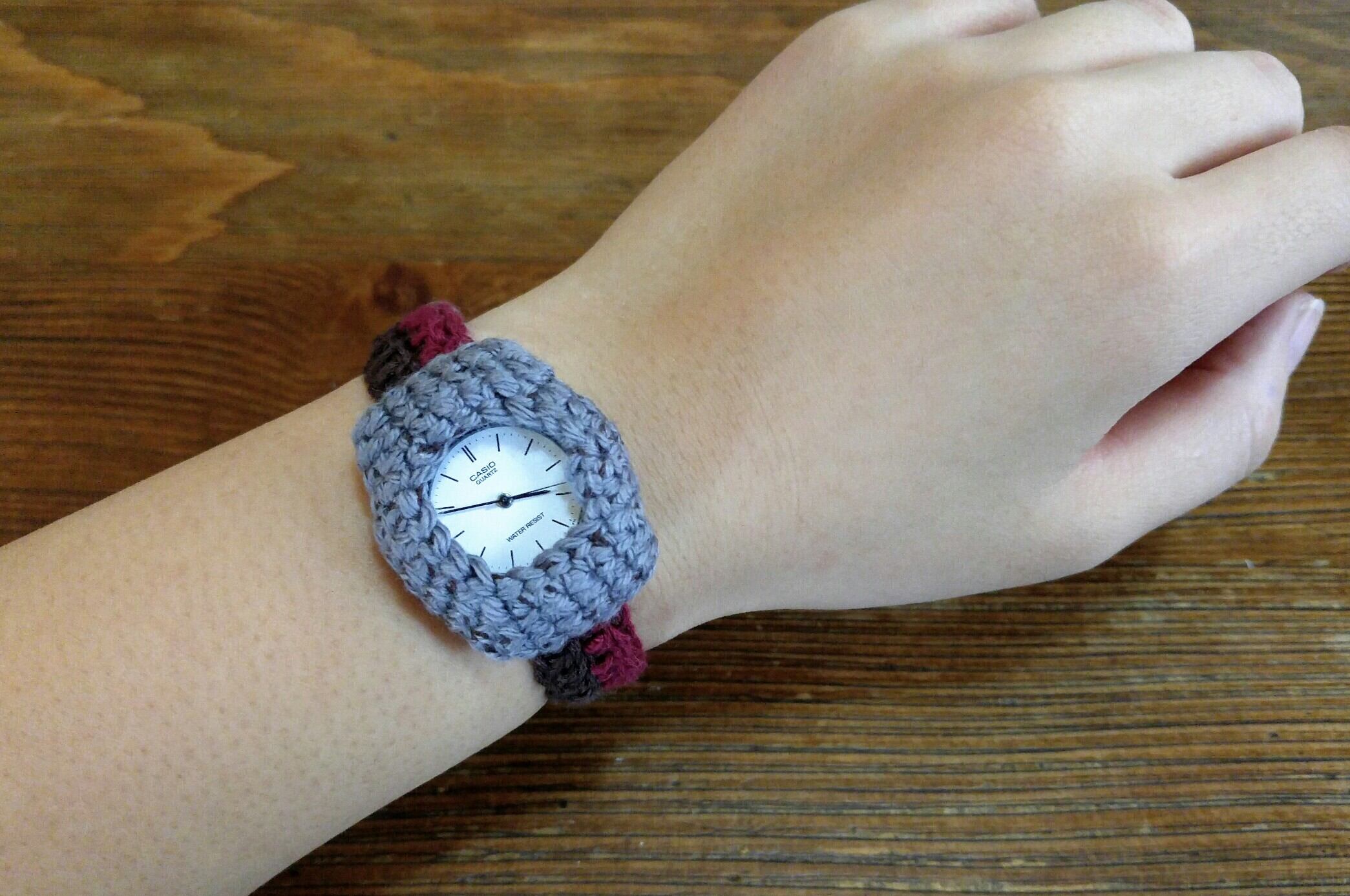 本商品は、時計の文字盤を伸縮性のあるニットでくるんでいます。