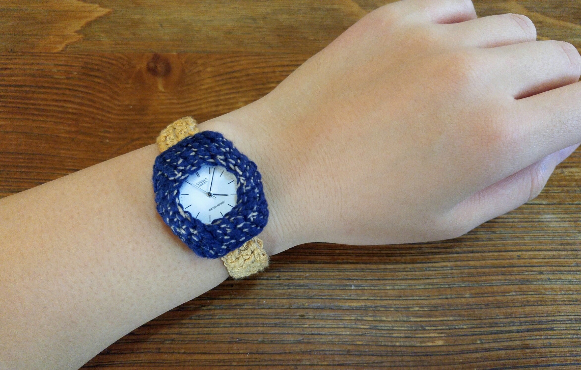 本商品は、時計の文字盤を伸縮性のあるニットでくるんでいます。