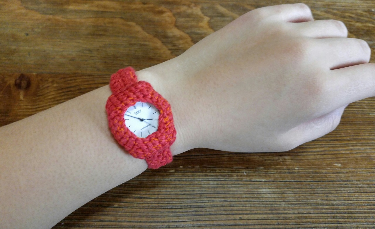 本商品は、時計の文字盤を伸縮性のあるニットでくるんでいます。