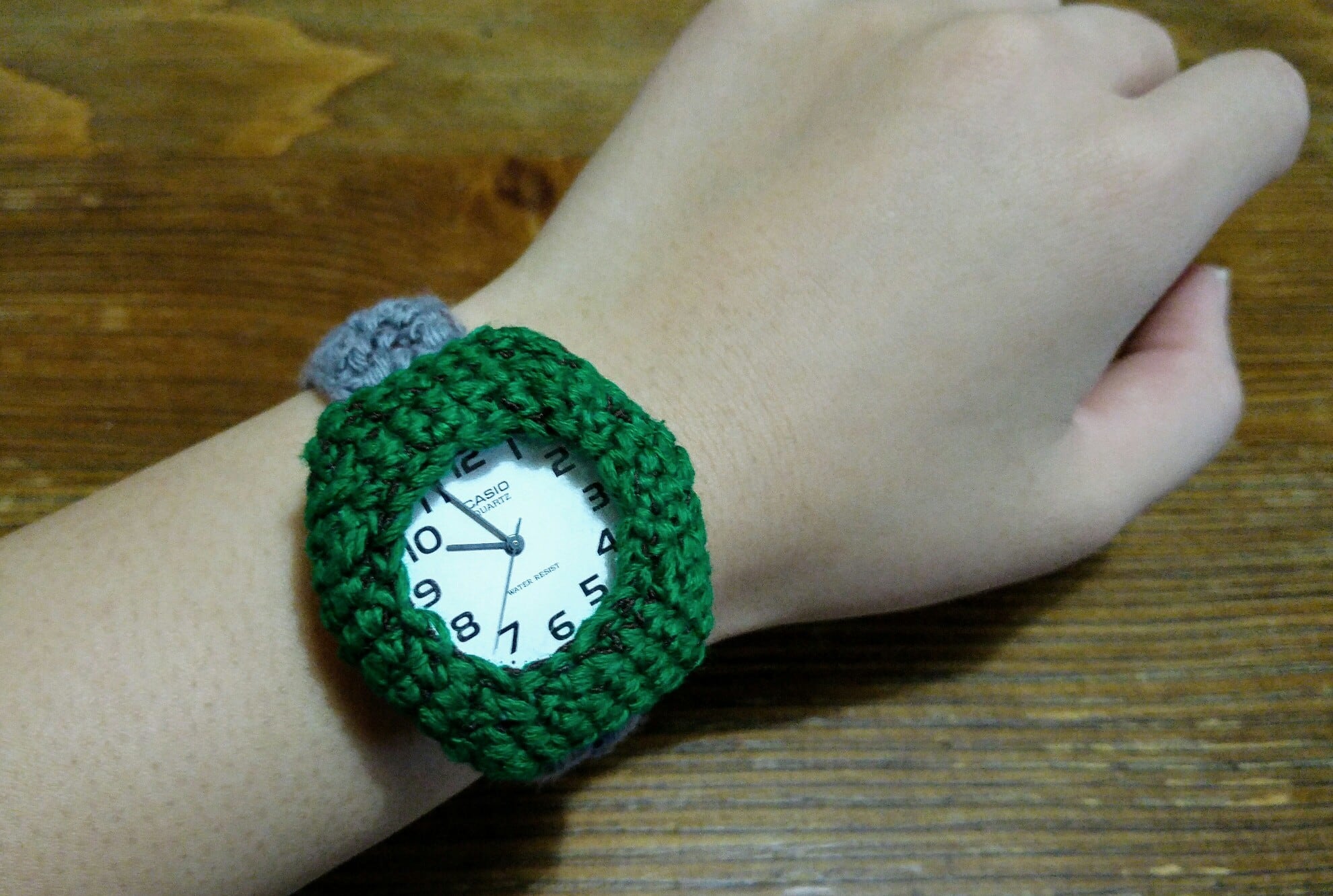 本商品は、時計の文字盤を伸縮性のあるニットでくるんでいます。