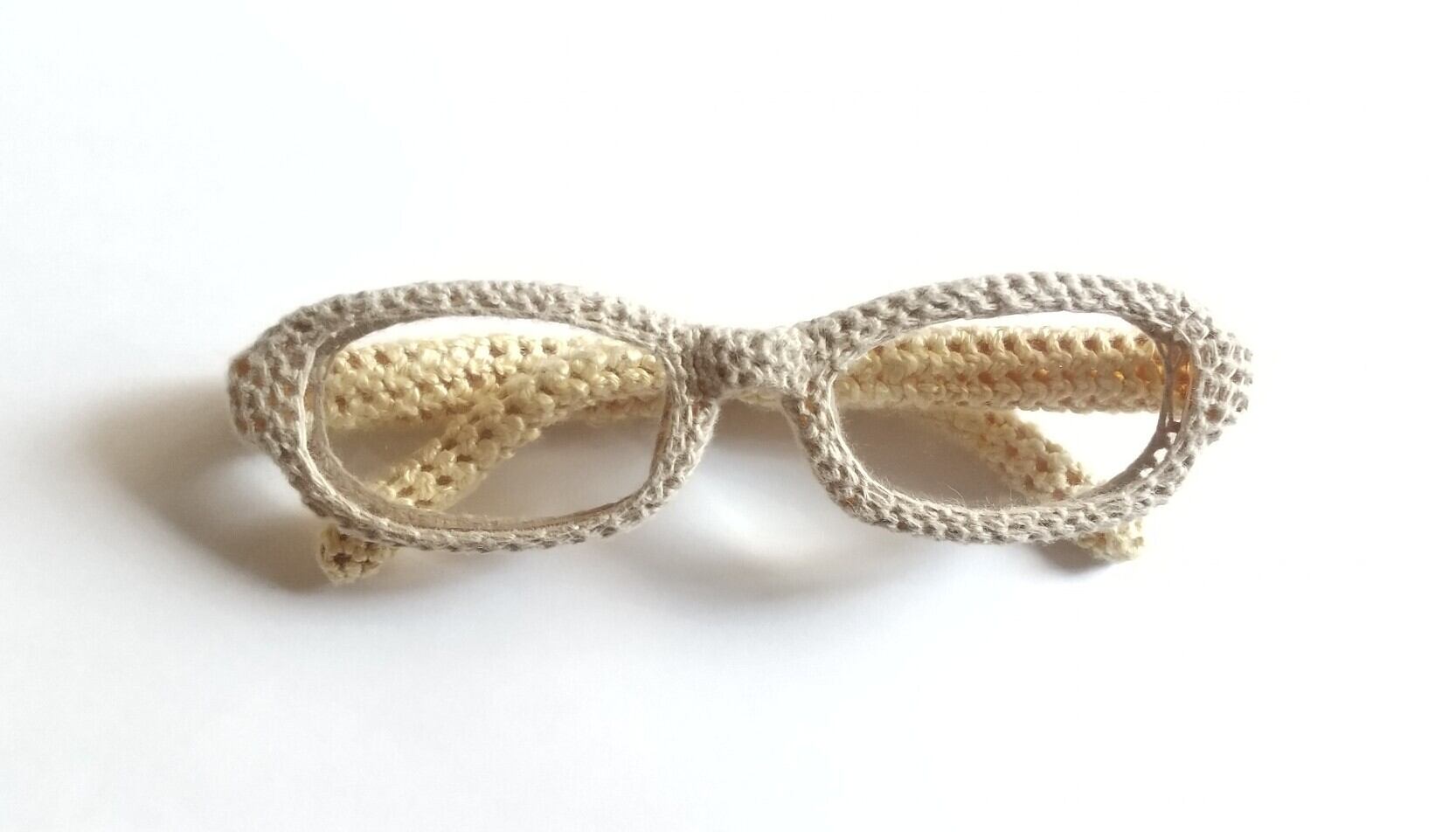めがねを柔らかい肌触りのコットンの糸で編みくるみました。